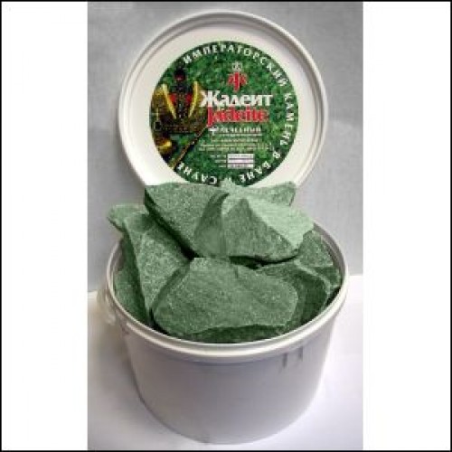 Жадеит отличается высокой удельной массой, благодаря чему хорошо аккумулируют тепло и сохраняют его в течение длительного времени. Это позволяет получать большое количество горячего качественного пара. Жадеит колется на куски различного размера, что позволяет грамотно наполнять каменку, укладывая в нижней части более крупные камни, выше – камни среднего размера и на самом верху самые мелкие. Особенно актуально это для закладки в печи периодического действия. Данная порода устойчива к воздействию высоких температур и резким температурным перепадам, благодаря чему отсутствует риск, что при поливе водой камень расколется.